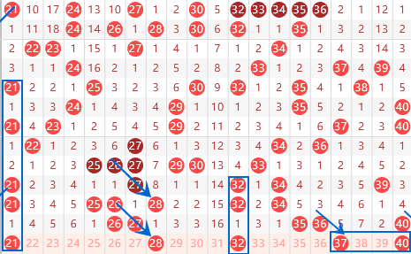 下图为21-40号数字区间走势分析图: