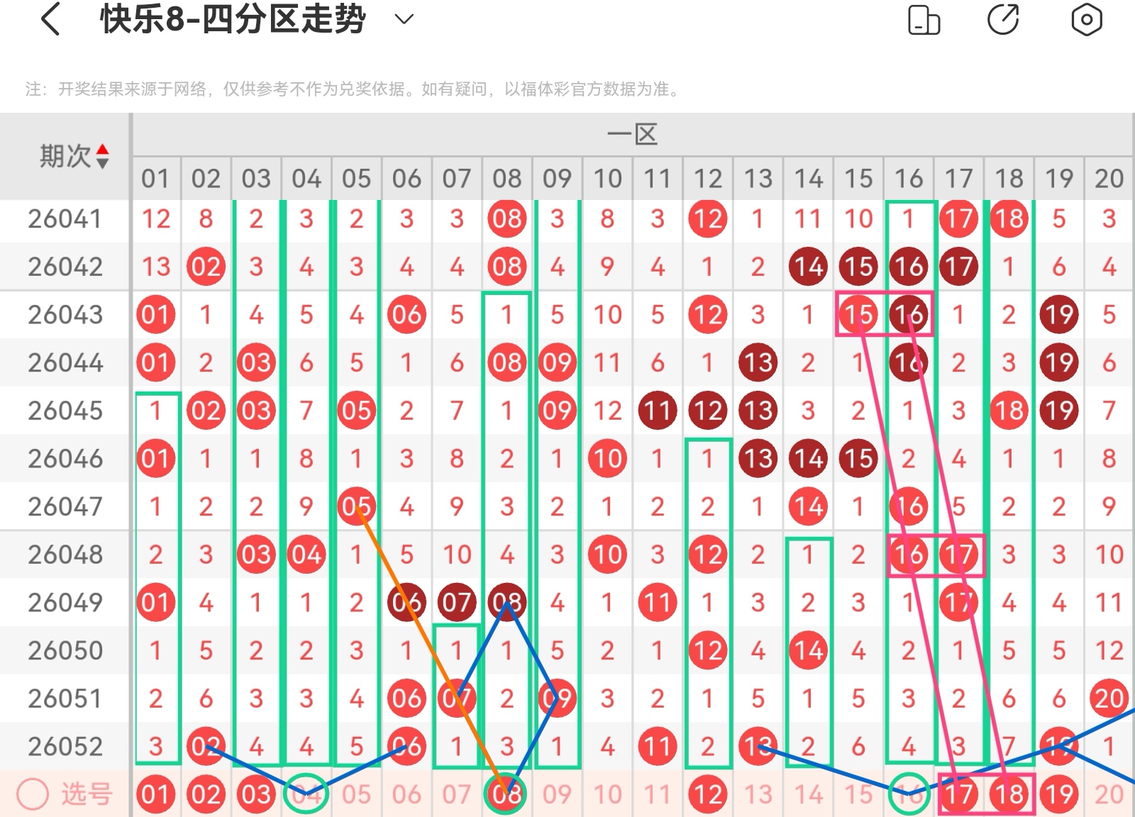 下面我为大家分享一下快乐八第26053基本走势分析: