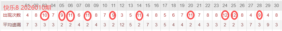 快乐8热号选择标准参考图(以30期为基准)所圈即为部分热码示意图