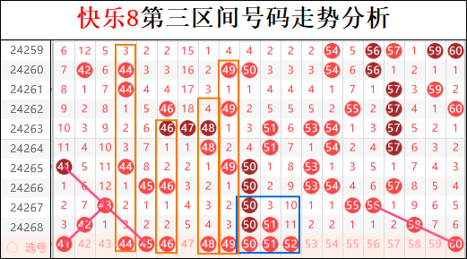 二区的出现倒是符合我们的思路,只是号码出现的过于片面,我们的整体布局中没有完整的做到布局。好在主线依然是下拉的走势。本期我们可以看到二区连续两期成为当前的热区,且走势依然是不变的,所以在本期的布局中二区必将面临转变。要么分崩离析,要么强者恒强。所以本期的布局中二区应该偏向于中规中矩的布局,应该才不会导致过度布局。