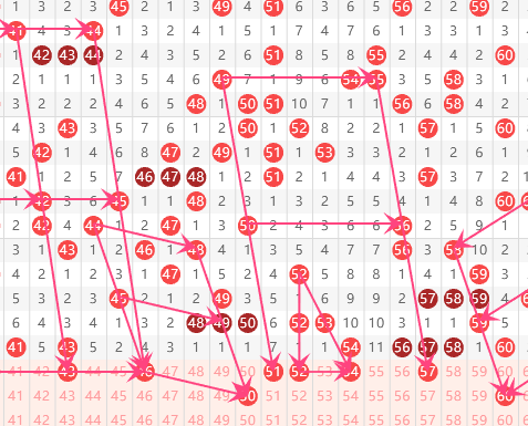 三区分析:【41-60】(走势图标注号码非小黄车大底,请谨慎参考,具体思路