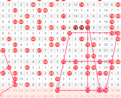 四区分析:【61-80】(走势图标注号码非小黄车大底,请谨慎参考,具体思路将在直播间分享讨论)