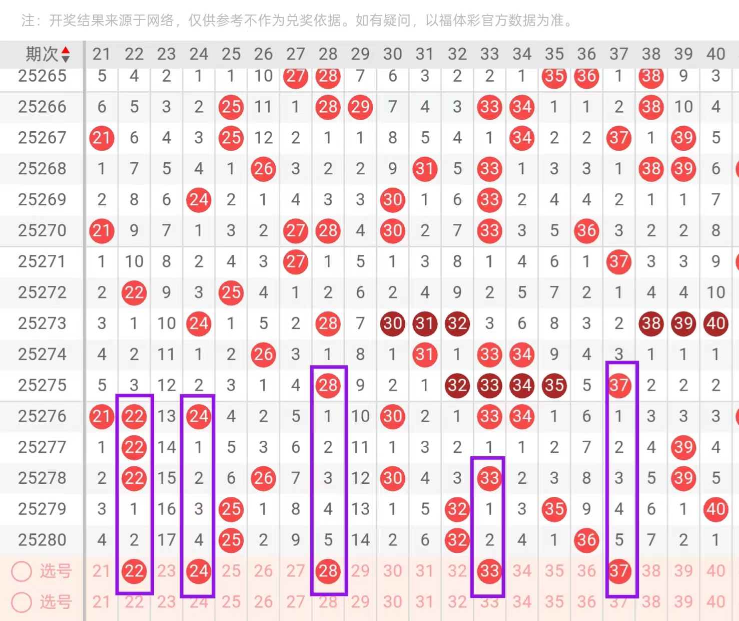二区21-40:二区间,上一期持续走冷,开出了3个号码的回补,今天我们要重点关注的是空位号码的下落和三角形态的回补在二头我们首先要重点关注的是21-22-2下一的选择如拿22的下落可搭配一五形态28的回补,如拿24的下落,可搭配31的六期遗漏回补,在这里我们要重点防的是中部位置28-29开出对子的可能,在3头,我们首先要重点关注的是33-34-2下一的选择和尾部位置39-40二下一的选择,如拿33的下落,可搭配39的两重空二回补,如拿34的下 落可搭配40的5-1形态回补。