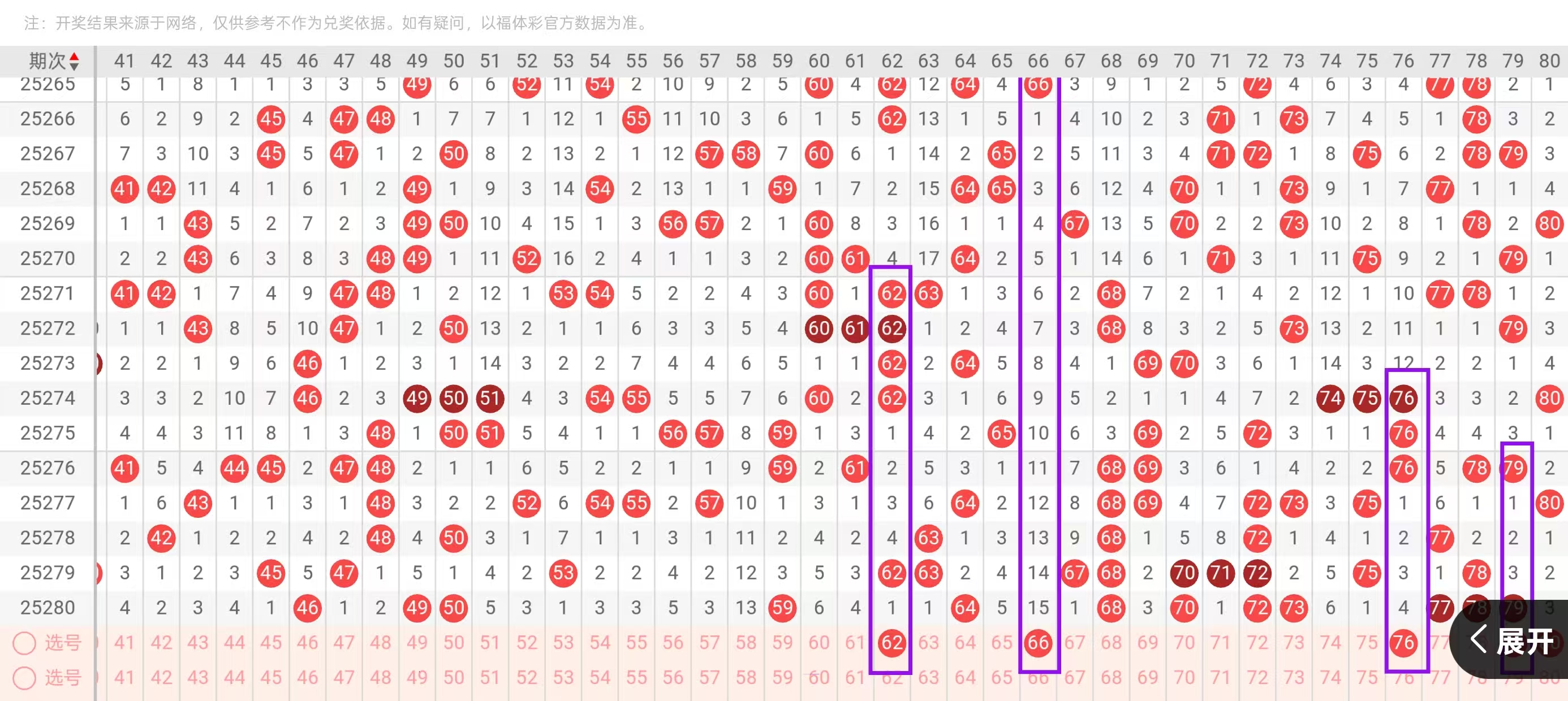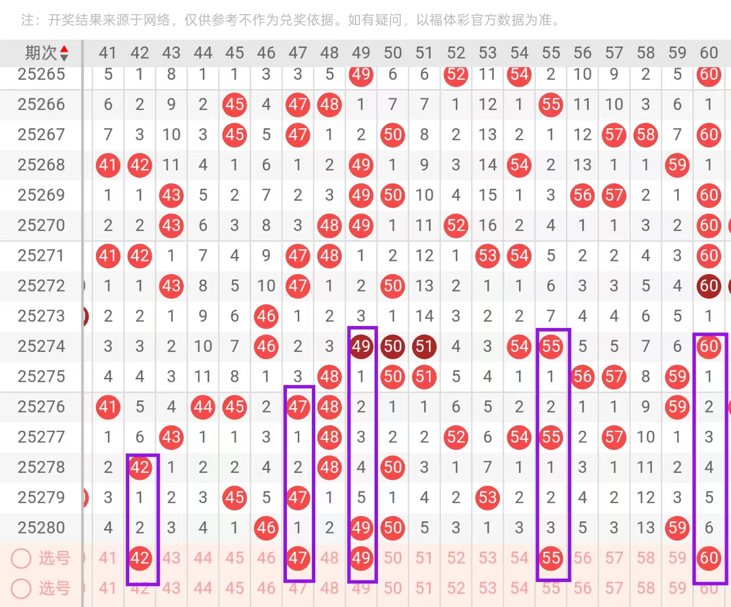 三区41-60:三区间,近几期一直处于回暖和冷区状态,上一期开出了4个号码的下落,今天我们要重点关注的是对子下面的回补和重码的下落,在4头我们首先要重点关注的是41-44-2下一的选择和X形状45-47-2下一的选择,如拿41的下落可搭配47的回补,如拿44的下落可搭配45的回补,在这里我们要重点防的是41-42开出对子下落的可能,在5头,我们首先要重点关注的是两个5前遗漏的回补,51-56-2下一值得我们重点关注,如看好龙头位置的51的下落,可搭配55的,回补如看好56的下落可搭配头部位置52的6-3形态回补,在尾部位置,我们这里要重点防的是58大遗漏的下落。