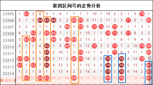 第四区间思路:四区走势是既在情理之中,也在意料之外。昨天我们来了一次自欺欺人的走势,都已经想到了四区主线是重号,愣是没有去做74-76这样的走势,真是遗憾。本期两个号码做重号的人必定是趋之若鹜,风险基本是倍增状态,所以倒不是很好的号码了。半期四区面临的断区走势,按照四区周期来看,应该是回补的概率极大,所以本期四区能不能回补应该是值得研究的重点。