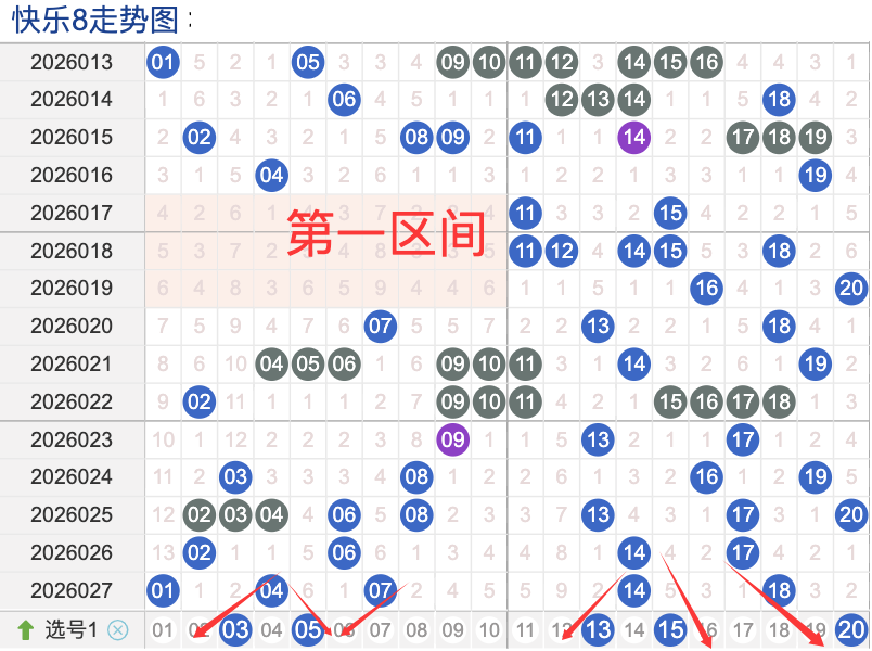 上期一区开5奖号(01.04.07.14.18)上期回顾一区开5个奖号一区间的奖号在上期呈现了递增的趋势,本期先来看号码05具有一定的间歇性,近期比如有时会间隔 3 到5期次出现,整体出现频率还是很稳定,号码03活跃度近期较冷。有一定的间歇性,间隔上来说的话也不是很稳定的,整体走势有一定的波动性,有明显的冷热趋势变化,出现的频次近期比较冷。号码13活跃度相还是很稳定,没有明显的连续出现态势,偶尔间隔多期会出现一次整体表现热。