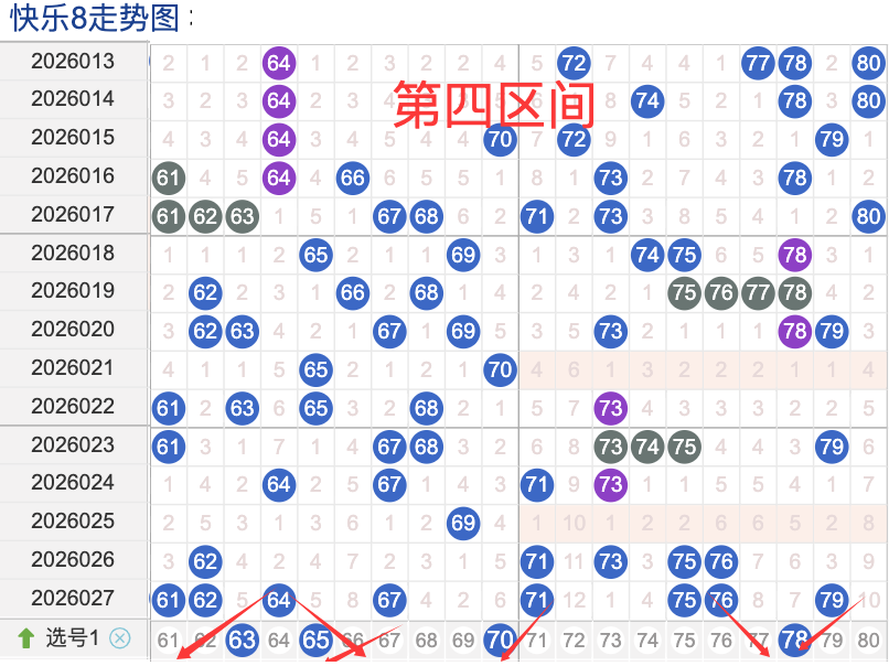 上期四区间开出了8个奖号(61.62.64.67.71.75.76.79)上期的四区开8个奖号呈现了一个递增的趋势,开出的奖号7头回补4个,6头回补4个,先来看号码63在近 30 期内属于还是很稳定的号码,近期出现频率相对也是稳定的,偶尔会间隔多期后出现一次,这个号码要注意防守,号码65具有一定的间歇性活跃度较稳定比如有时会间隔 3到5期就再次出现,也有时会间隔多期,近期整体出现频率比较温热,近期还是要关注的.号码78活跃度近期比较热,有一定的间歇性。活跃度近期较热,整体走势有一定的波动性.