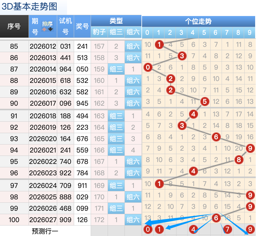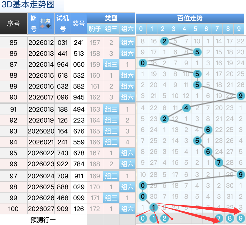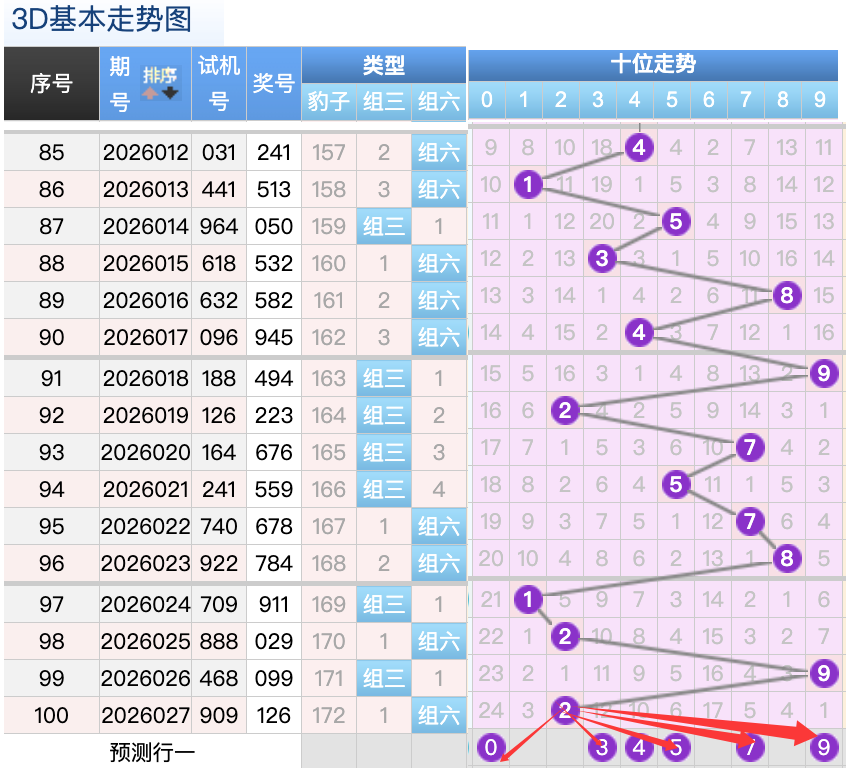 上期3D十位开出的奖号是2号,上期在十位上2号球这个号码在上期是一个小码回补的落位点,本期来看5号和7号球在十位上要注意这两个号码是有机会继续顺着上期的2号球继续走出两个常搭配落位趋势这里的两码是小周期的落位注意防守一码就好了,9号球还是个常搭配码折返的落位点,然后0号球还是一个冷码回补的落位形态也是一个冷码落位形态回补,再来看3号球是顺位码回补这个点位注意防守。