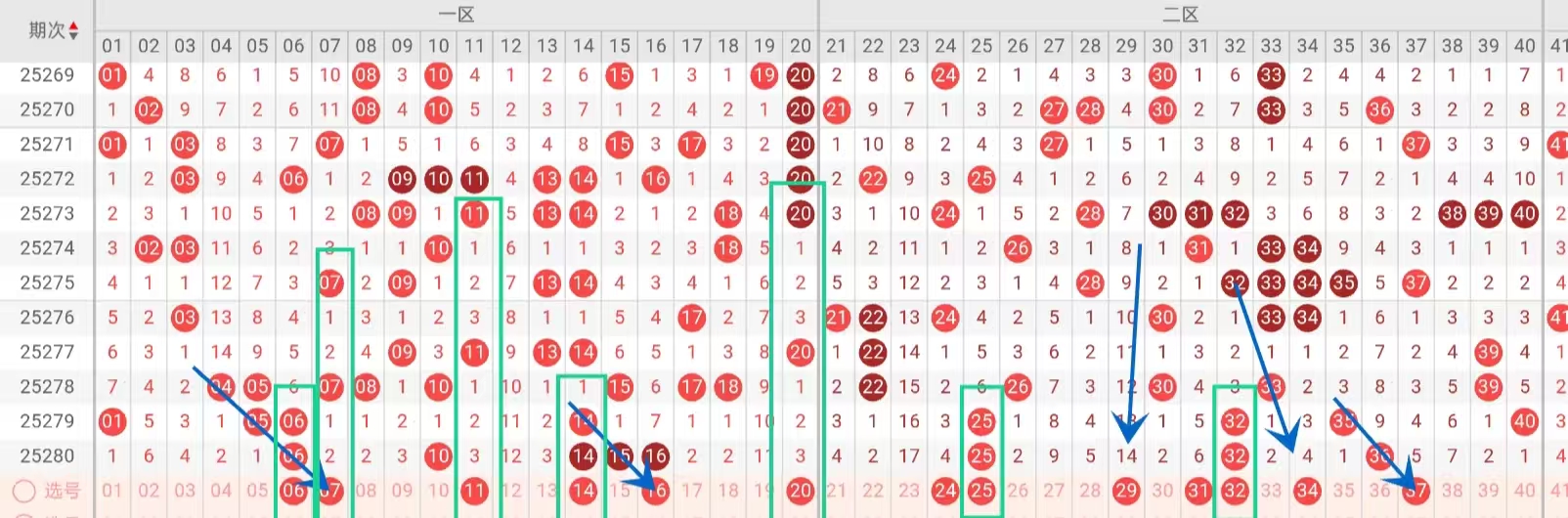 第2025281期福彩快乐8通过以下走势图及一二区间预测分析如下: