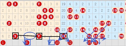 我们先来看1-20号数字区间分析如下图: