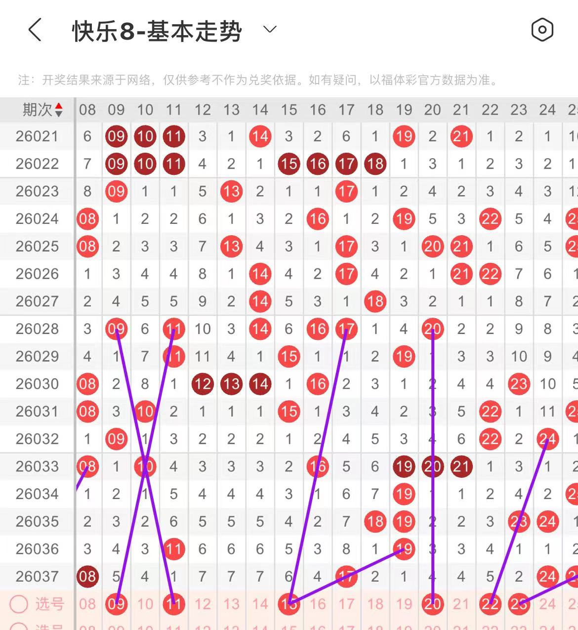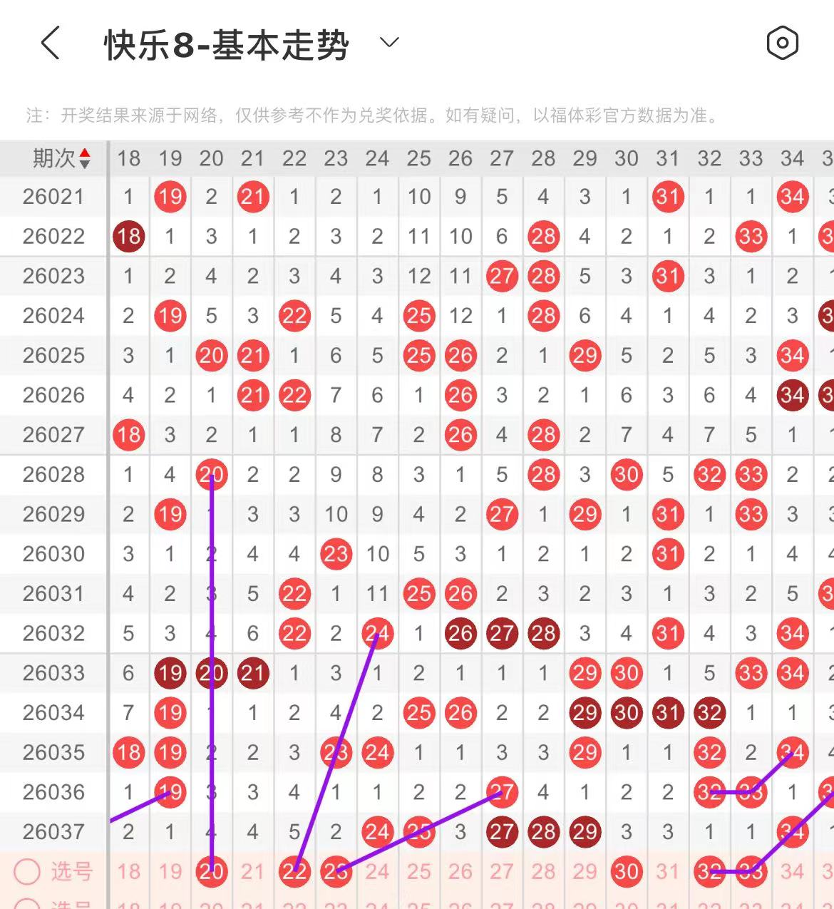 21-30区:本区间上期开出了五个号码,从号码走势图上看,该区现属于温热区,出号个数应该还能保持在三个号码左右,有出号走势的的号码有22.23号,均有斜连出号走势,从形态上看,有同出的可能,30号,做为边号开出。