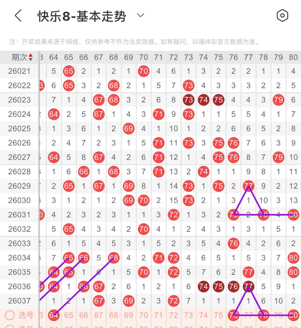 71-80区:本区间上期开出了一个号码,从号码走势图上看,本期重点关注后半区号码回补,出号个数在三个号码左右,有出号走势的号码有76.78号,隔期分边出号走势,80号,上下对称出号走势。