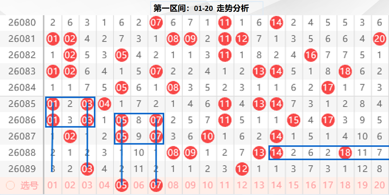 一区分析:【01-20】(走势图标注号码非小黄车大底,请谨慎参考,具体思路将在直播间分享讨论)