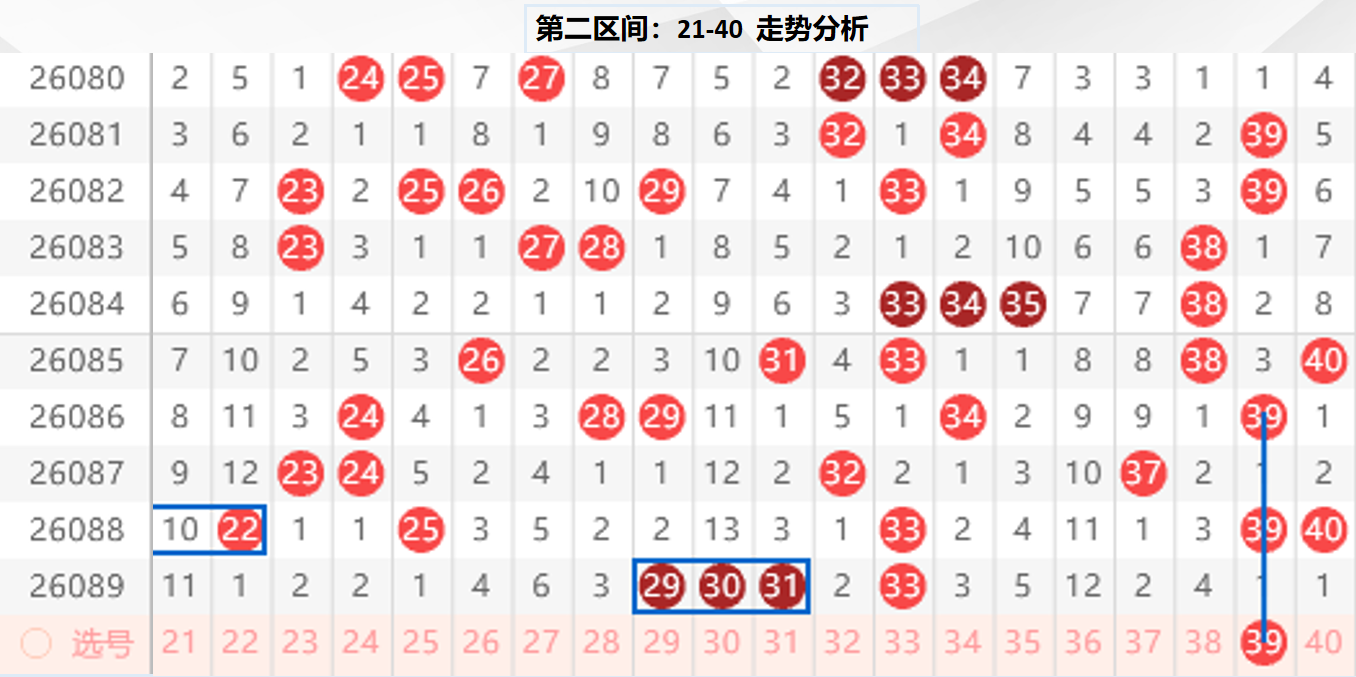 二区分析:【21-40】(走势图标注号码非小黄车大底,请谨慎参考,具体思路将在直播间分享讨论)