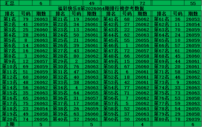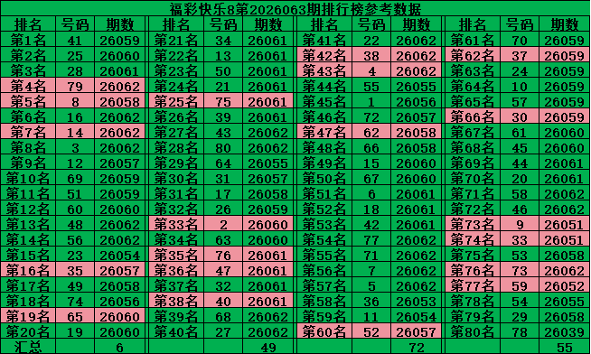冷四区第61-80号(最大位置遗漏是13期的第64位,对应本期号码是:24号)