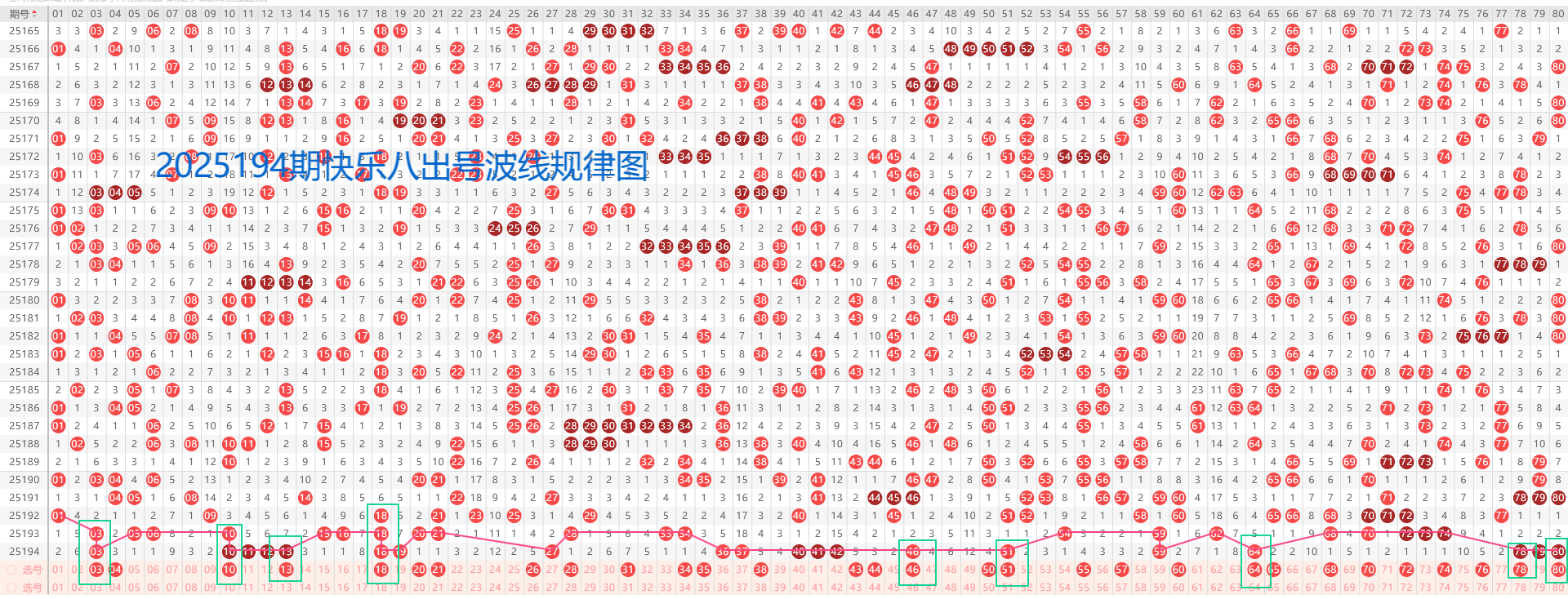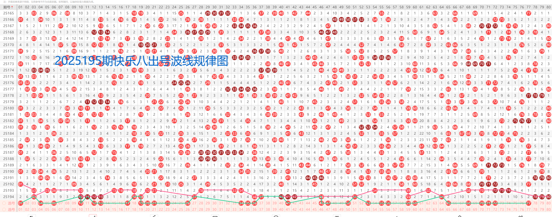 这快乐8有点小长,一般看不全,作者把关联号和上期拉对的号都划了出来,方便大家查看。