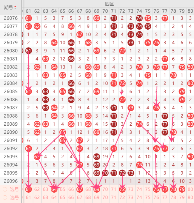 四区间关注的打底是61.62.64.67.69.72.76.77.79.80中参考3-4码开出机会