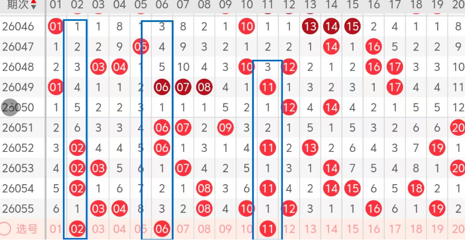 第一区间的走势分析:第一区间上期开出了七个号码球,主要的落号点位在一区间的前后半区,走出了两奇五偶的形态走势,上期一区间的前半区落下了四个号码球,后半区落下了三个号码球,整个一区间处于走热的趋势,根据一区间的走势规律,今天的一区间我们主看前半区最近热码的回补,主看02 06 11这三个号码球的落位,今天落下的机会很大,02走出了对称的走势,06也走出了隔期对称的走势,11走出了梅花的形态走势!这个三号球建议大家打个三胆拖,或者打个三码复二比较稳妥,参考为主!