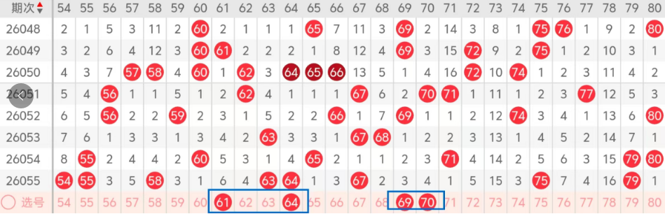 第四区间的走势分析:第四区间上期开出了五个号码球,主要的落号点位在四区间的前后半区,走出了四奇一偶的形态走势,上期四区间的前半区落下了三个号码球,后半区落下了两个号码球,整个四区间处于走热的趋势,根据四区间的走势规律,今天的四区间我们主看前半区61 64组合的落位,落下一码的机会很大,再看69 70姊妹对号码的落位,落下一码的机会很大,61 64都走出了斜连码的走势,69 70是冷热码的回补,这个号球建议大家打个四码复三,或者打个四码复二比较稳妥,参考为主!