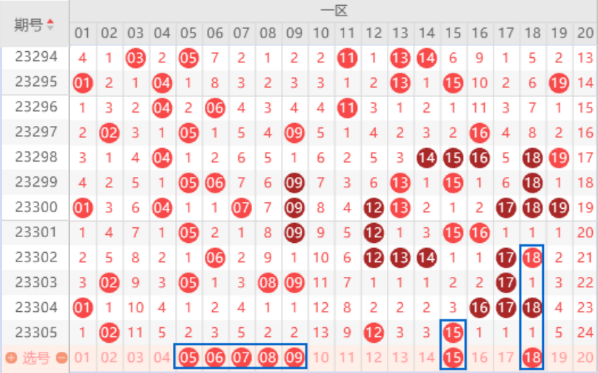 下图为01-20号数字区间走势分析图: