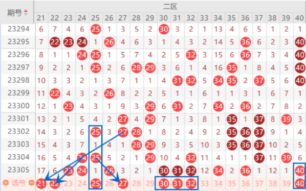 下图为21-40号数字区间走势分析图: