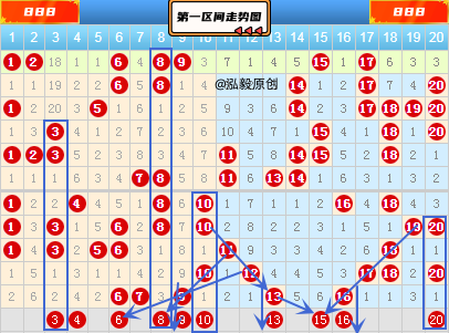 在该区间对称类型号码出现了多组,分别为3 8 10 11 18 20号,这是否是一个重要的提示呢?既然本区间出现了6组形态相同的号码,落号的可能性就很大。回顾历史期数中,这种对称类型的号码在每期平均会开出2-3组左右,那么其他区间的对称类型我们是否可以直接放弃呢?上期又开出了6 7 9号这种连号空一带号的类型了,而且仅有这一组,所以本期可以在这里好好作战了。14 15号分别与10 11 12 13号形成5斜连和16 17 18 19号形成5斜连,既然本期有两组5斜连,那么出现一组的概率就会大增,毕竟在历史期数中这种状态的出号情况也是很可观的。