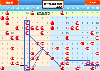 26号是属于冷号回补状态,一般冷号回补状态都是在3-5期内的,这里已经超出了最大峰值,是否还有考虑的价值呢?大家自己考虑吧。27号是属于重号空一期出号,这种类型在历史期数中也是比比皆是,而且本期27号又与28 29号形成三斜连,走势还是很可观的。33号属于断斜连号,而且它又是一个小冷号,冷号出重号的情况,观察近三期内,出现的概率已经变小了,所以本期就防范于未然吧。34 38号形成的空三类型本期有三组,既然上期的空三类型组合都没有开出号码来,那么在出号趋势不变的情况下,本期就是我们重点照顾对象了,而且连号35 36号已经连续7期没有落号了,近期内都是我们的重点观察对像。
