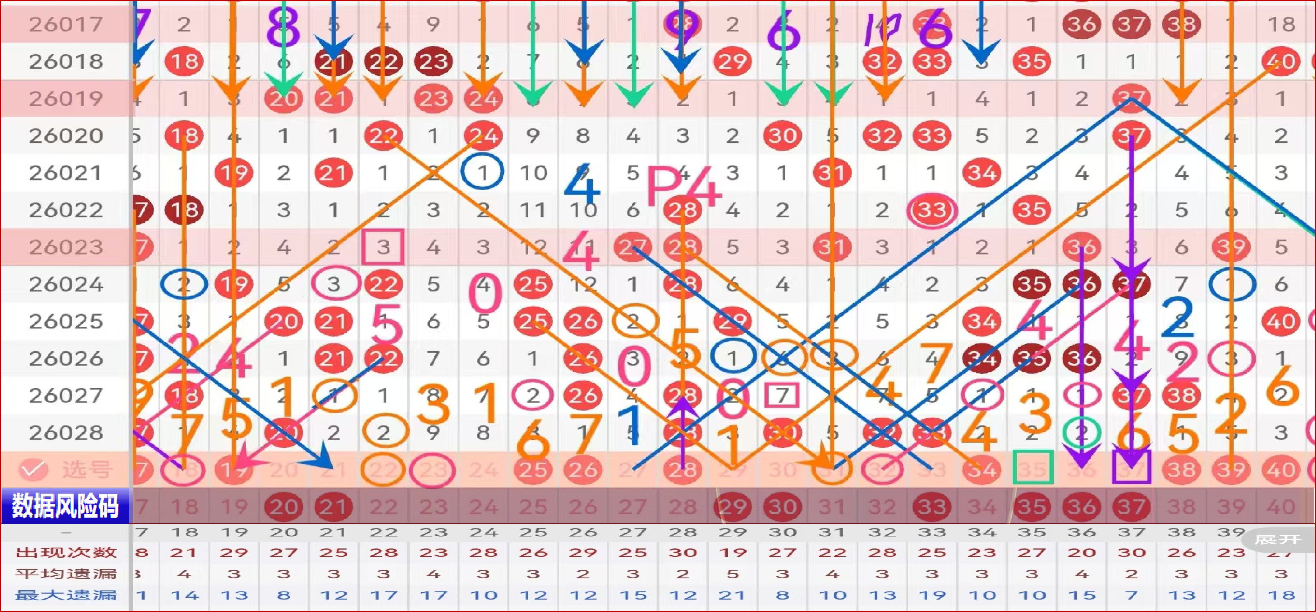 二区间上期开出了4个号码球,温态开出;2字头本期数据比较丰富,回补遗漏码也较多,九哥推荐本期做胆拖的拖码可选择该区域号码球,预判区间2字头号码球不低于3个开出!21属于强制风险;22 23 24强制防守码;25 26这里主防两码连号回补,可根据组合拿号,双码复式防守;区间中部的28是本期三重必防码或重点防守码;30 32 33三码需要关注一码走重,30 32都属于7期值走重点位,二择一推荐32,那么30就强制风险了;连号分边的34,第五次走遗漏2点位,可重点关注;尾部38 39 40这里本期防连;如果本期有多连或假多连开出,可重点关注区间段2字头;