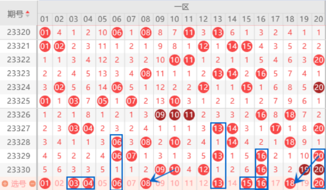 该区间的01 03号数字我们注意一下,防守同出的可能性。本期的04号数字我们关注一下,有机会出号的。连号06 07号数字本期我们也是要注意出一个号码的情况的。本期的08号数字我们注意一下,毕竟上期开出了10号数字,本期有可能会把08号数字带出来的。本期我们注意一下12 13号数字同出的情况,12号数字是属于三斜连头尾重号,13号数字是属于空一对称号码,出号机会都有。本期的15号数字我们关注一下,16号数字的重号有机会带出15号数字的。