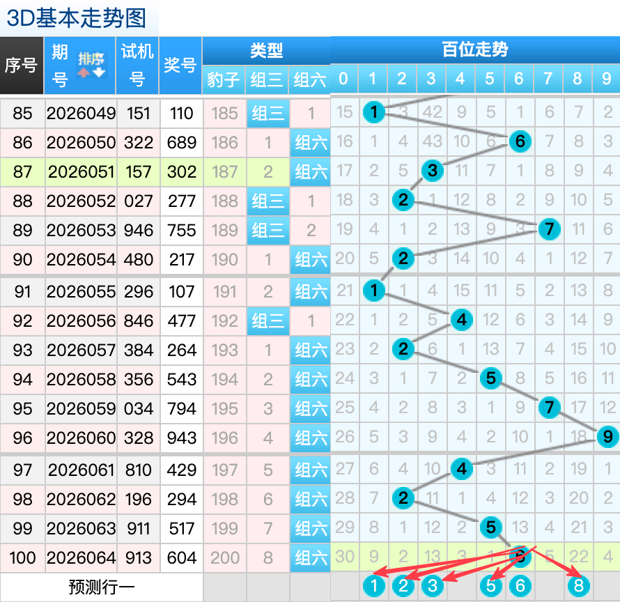 3D上期百位开出的6球,这个奖号6是一个冷码间分边的回补落位趋势也是一个比较好的符合百位上的落位点,先8号球这里还是有机会继续走出一个大号码冷回补趋势还是要注意防守的,还有一个就是2号球这里的是折返码的落位形态在这里的机会还是很好的要注意防守,然后5号球这里要注意是一个常搭配折返回补落位趋势注意防守1号球在百位上要注意可能有机会走出热码回补的落位码 。