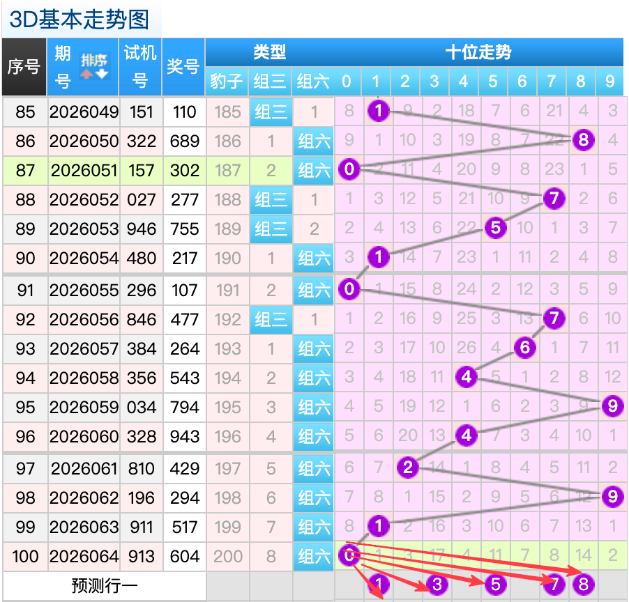 上期3D十位开出的奖号是0号,上期在十位上0号球这个号码是一个热号码的回补落位点,本期来看3号在十位上要注意这个号码是有机会继续顺着上期的0号球继续走出常搭配冷号码的落位趋势这里的号码回补的落位形态注意防守就好,再来0号球这个点位注意防守走出重码的落位趋势7号球和8号球的两个大号码边回补要注意参考选择一码。
