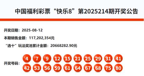 首先我们来回顾快乐82025214期开奖号码: