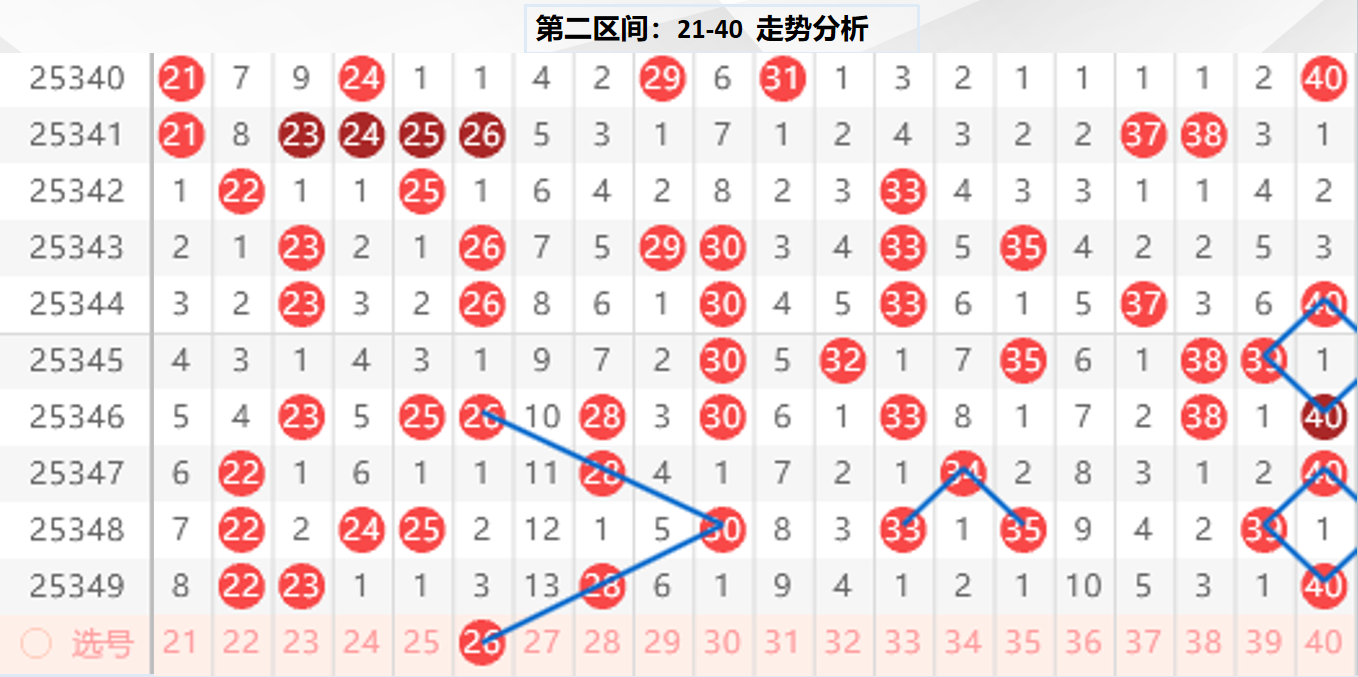二区分析:【21-40】(走势图标注号码非小黄车大底,请谨慎参考,具体思路将在直播间分享讨论)