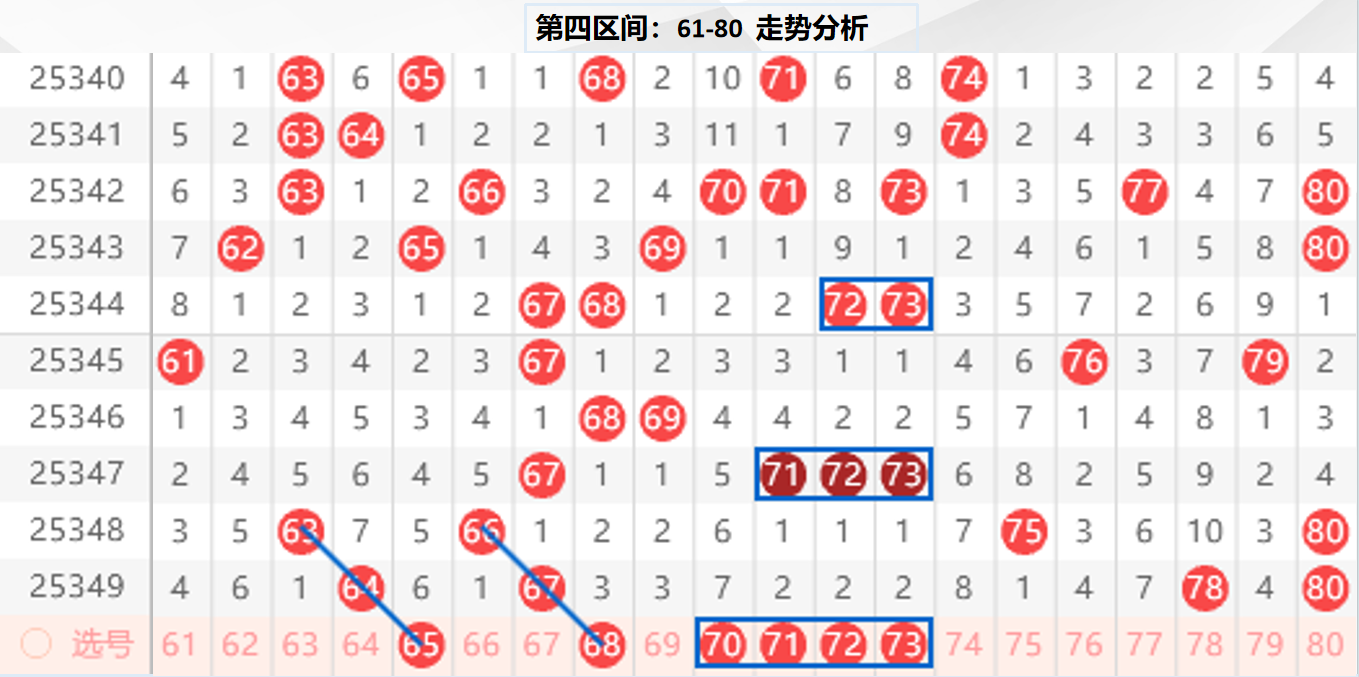 四区分析:【61-80】(走势图标注号码非小黄车大底,请谨慎参考,具体思路将在直播间分享讨论)