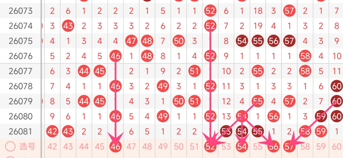 上期三区开出7枚奖号,属于超热开态势,按照“物极必反”的走势逻辑,本期出号量预计回落至4-6枚,大概率不会继续延续上期的高热。从重号规律来看,上期开出的54均符合近期重号活跃的特征,其中54已经连续2期开出,惯性出号的可能性较高。而且还需注意其他已经连续多期漏出的号码,本期有几率回补。综合考虑,本期三区推荐关注号码:46、52、54、56、57。