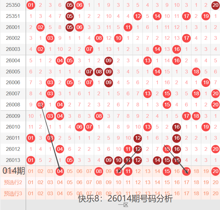 快乐8:26014期号码走势分析(26年,祝大家好运连连)