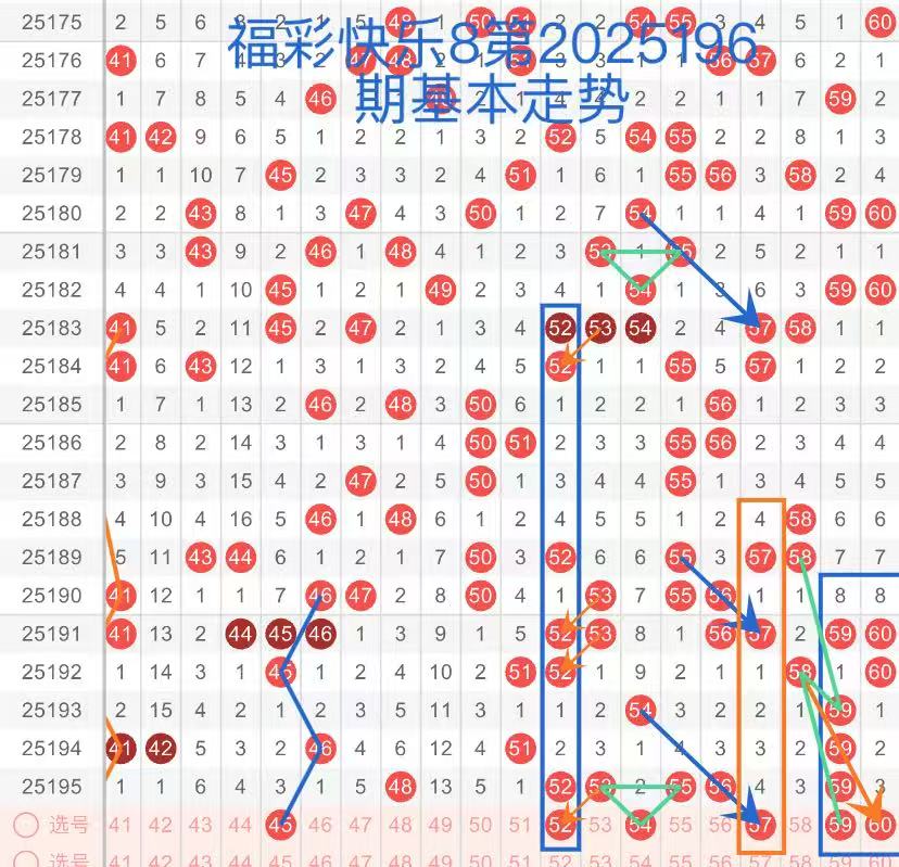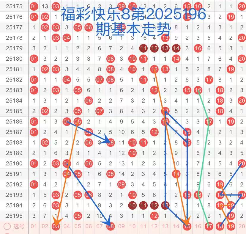 下面是我对2025196期福彩快乐8的分析和预判,希望通过我的分析能让大家今晚大满贯!福彩快乐8上期开奖号码如下图