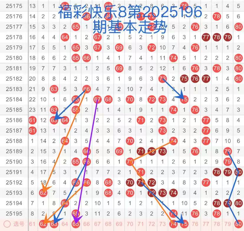 25196期福彩快乐8,走势综合分析(本期一胆参考63)