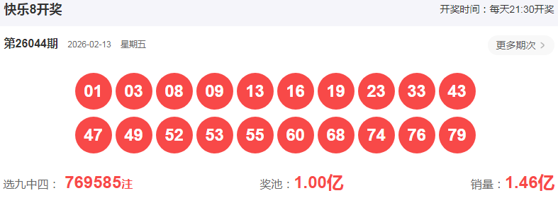 快乐8第2026044期开奖号: