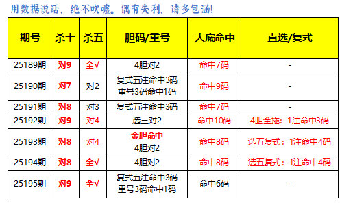 免费版仅开放大底号码和部分杀号, 更多杀号、胆码发布在会员专区。
