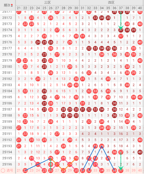 三区开出:24,26,27,29 奇偶比: 2:2 和值:106 跨度:5,上期开出4个号码,奇偶数号码均衡,重号:26,重号数:1。本期三斜连走势:25 26 28 30,隔码斜连走势:22,近5期出号量:4-2-1-4-4,近10期平均出号2.9枚,上期奇偶比: 1:3。推荐关注号码:22、25、26、28。