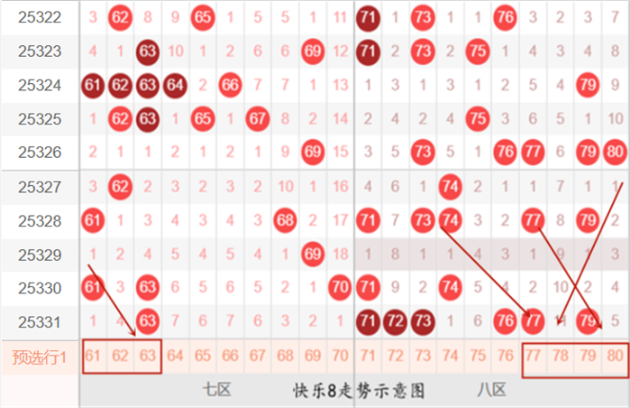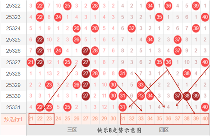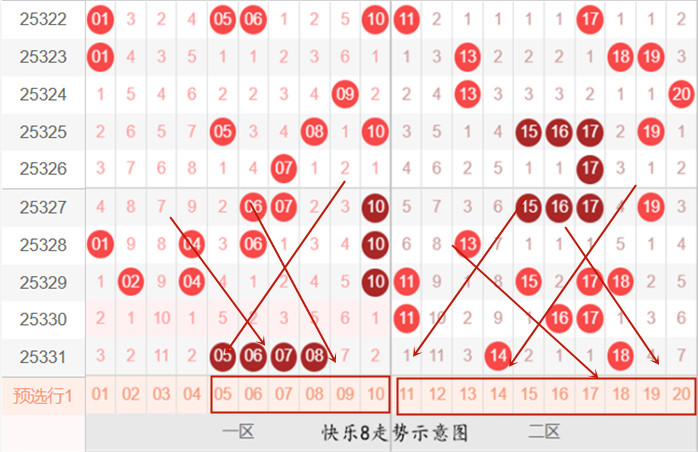 快乐8第25332:冷热区间判断及号码分布推荐分析