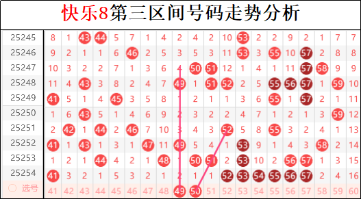 二区上一期开出四码,典型的热转冷走势,前期中重号加连码成就了区间的超级走势,目前很明显转向三区布局了。哪儿去仅以温态布局就可以了,虽不至于彻底丧失走势,但也绝不会太热。好在形态上二区保留了连码和重号的走势,这一点是本期布局的契机。尤其是隔期走势在目前的二区还是比较明显的,不过本期建议大家注意二区连码的回归,毕竟目前二区的这个走势与三区有着异曲同工之妙,相信大家能看得出来。