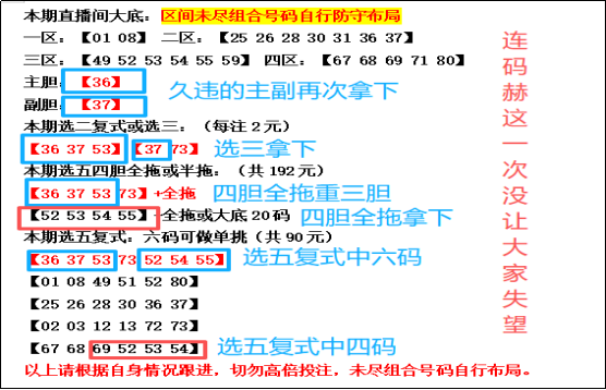 本期区间比3:4:7:6,果然三区给了我们最大的奇迹,六连直接出现,我们也是稳稳拿捏这波福利。再次恭喜所有愿意相信我们连码的朋友们,本期我们将再接再厉继续给大家送上最精彩的连码布局,请记住一点形态只要到,连码最强。