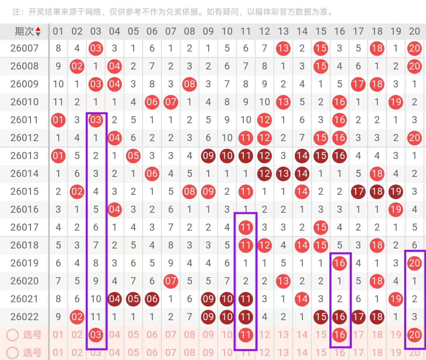 一区01-20:一区间,上一期出现了大面积的回补,总体回补了8个号码的下落,从近期一区间号码下落点位来看,一直在持续走热,连续走热了两期遗漏,今天我们要重点关注的是一区间空缺位置的下落和重码的一个回补,在0头,今天这里我们要重点关注的是01-03的落后点位和重码10-11的落号点位,今天这里可用01-11的搭配和03-11的搭配回补,回到一头位置,今天这里我们要重点关注的是大羊角形态号码的一个回补,今天这里要重点注意的是16-17的重码下落,这里可用16-19的搭配和17-20的搭配回补。