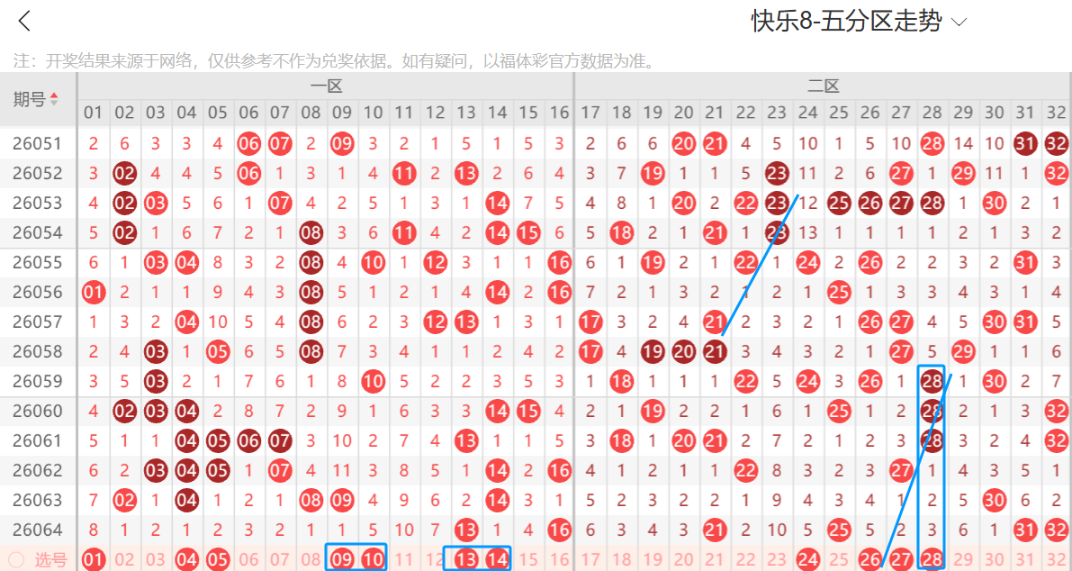 快乐8第065期分析,连续两期直溜溜中选二,上期三胆全中