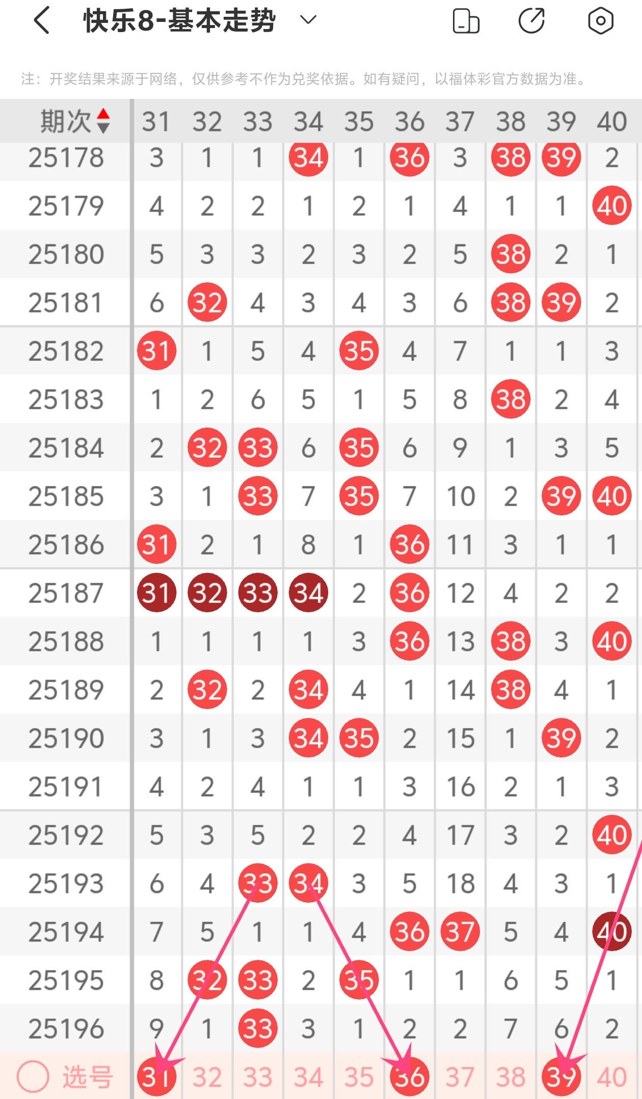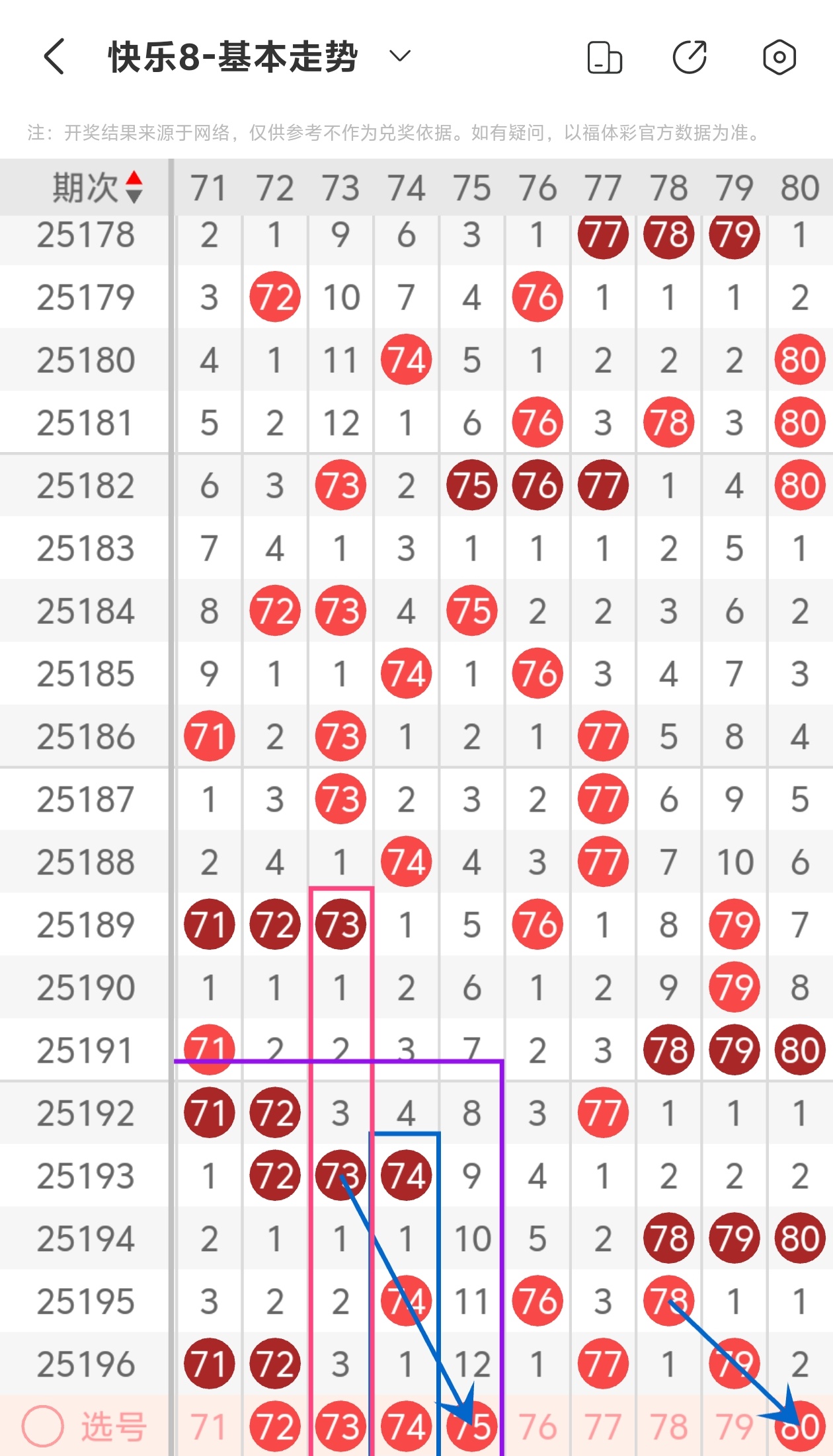 大伙都知道,玩彩票得理性,谁也不能打包票百分百中奖,别人的看法能参考,自己的判断也不能丢。但我这次对2025197期福彩快乐8的分析,那可是下足了功夫!