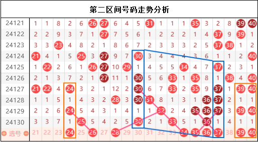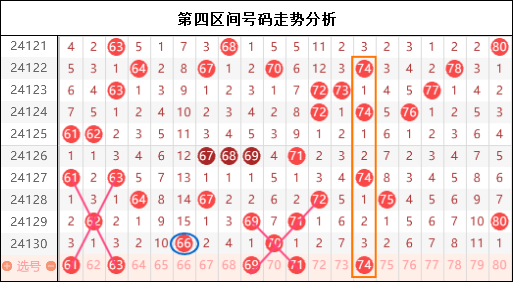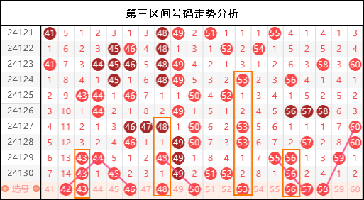 第四区间思路:四区与我们预测的完全一样,就是一个走冷的区间。所以昨天我们没有布局四区号码,这一点应该是很明智的选择。那本期来看不排除很多人再一次去追逐四区,但是我觉得四区在没有返热之前,大家尽量不要太早的涉足四区,毕竟整个形态上号码出现的比较差异化。那本期我们可以适当的在四区布局个别胆码,但整体的防守上还是要去做处理的。