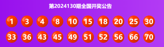 首先我们先来回顾快乐8第2024130期开奖号码:
