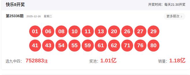 2025337期快乐八分析: